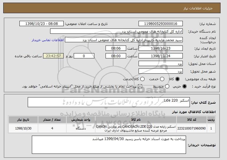 نام دستگاه خریدار:اداره کل کتابخانه های عمومی استان یزد