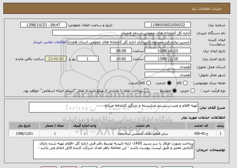 نام دستگاه خریدار:اداره کل کتابخانه های عمومی استان همدان