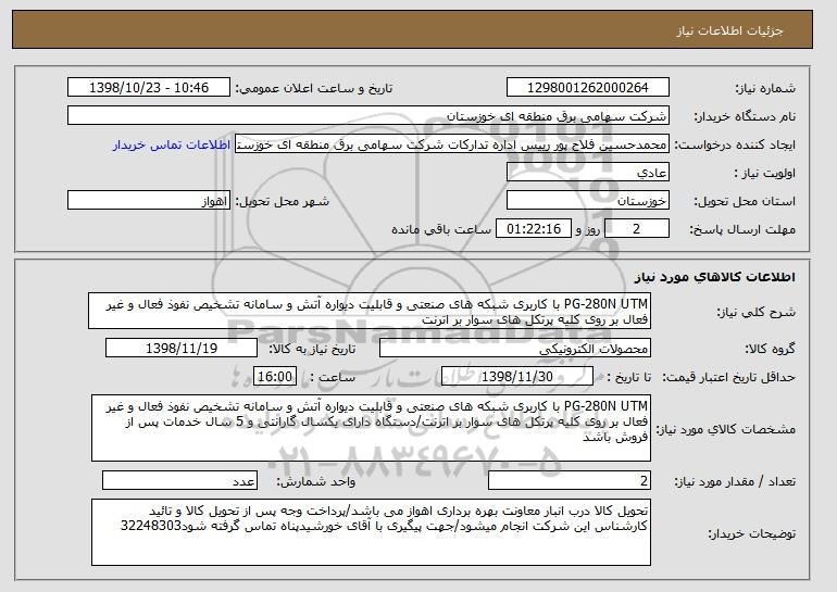 مشخصات کالای مورد نیاز: PG-280N UTM با کاربری شبکه های صنعتی و قابلیت دیواره آتش و سامانه تشخیص نفوذ فعال و غیر فعال بر روی کلیه پرتکل های سوار بر اترنت/دستگاه دارای یکسال گارانتی و 5 سال خدمات پس از فروش باشد