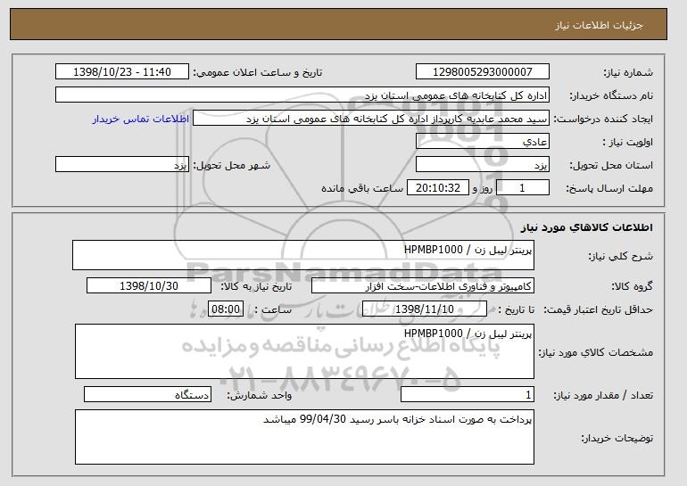 شرح کلی نیاز: پرینتر لیبل زن / HPMBP1000