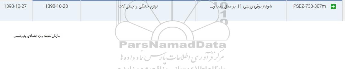 | PSEZ-730-307M | شوفاژ برقی روغنی 11 پر مدل مدیا و ... | لوازم خانگی و چینی آلات | 98.10.23 | 98.10.27 |