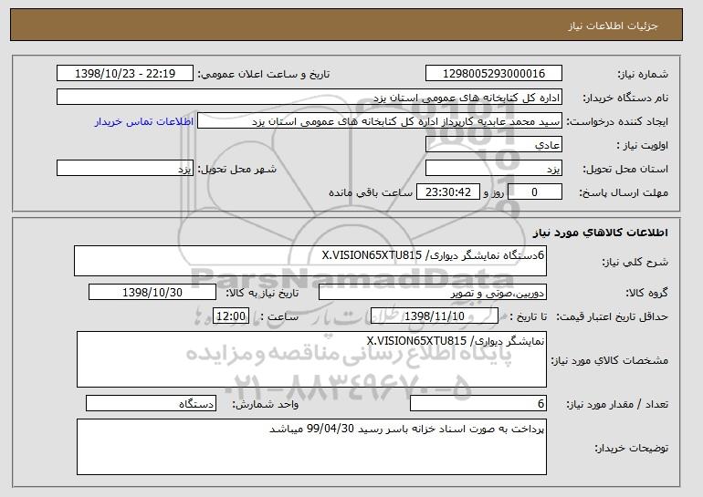 استعلام 6دستگاه نمایشگر دیواری/ X.VISION65XTU815, استعلام 6دستگاه نمایشگر دیواری/ X.VISION65XTU815