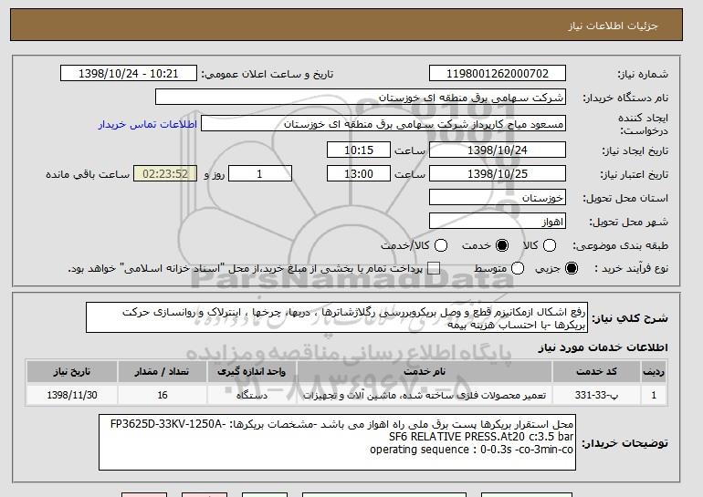 نام دستگاه خریدار:شرکت سهامی برق منطقه ای خوزستان