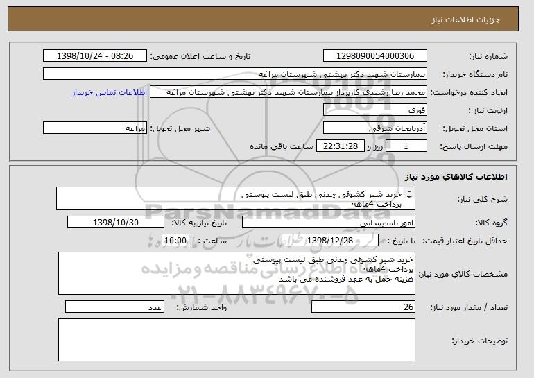 نام دستگاه خریدار:بیمارستان شهید دکتر بهشتی شهرستان مراغه