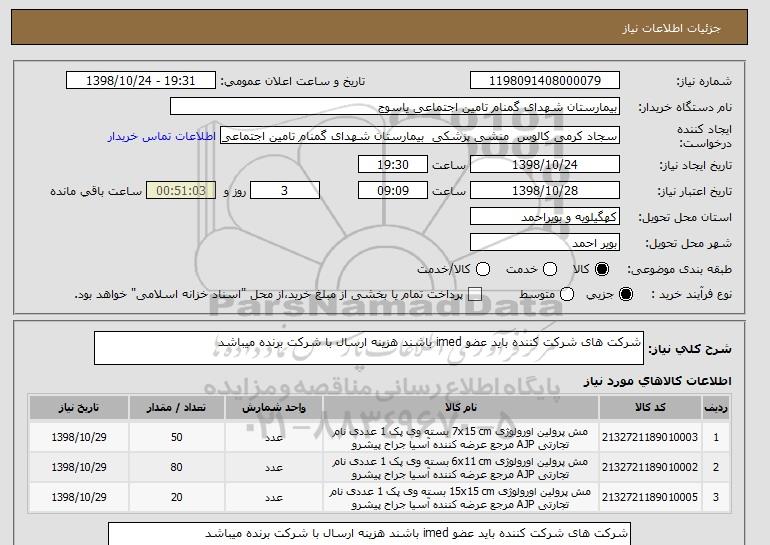 نام دستگاه خریدار:بیمارستان شهدای گمنام تامین اجتماعی یاسوج