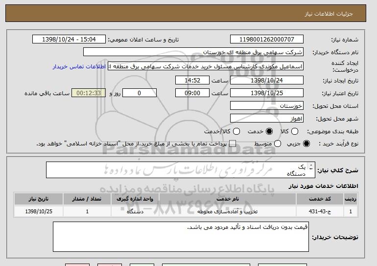 نام دستگاه خریدار:شرکت سهامی برق منطقه ای خوزستان