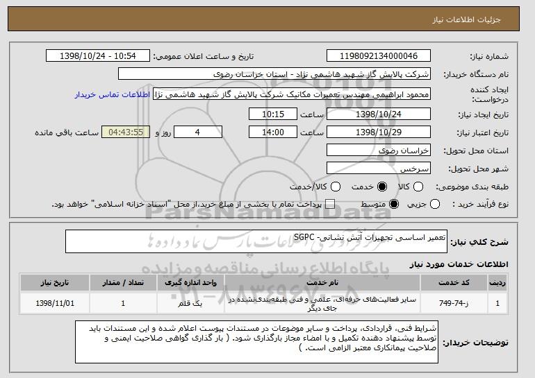 شرح کلی نیاز: تعمیر اساسی تجهیزات آتش نشانی- SGPC