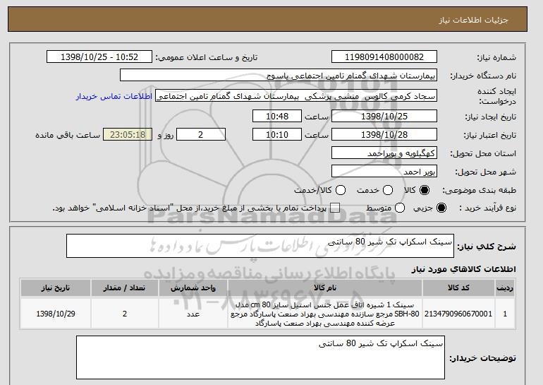 نام دستگاه خریدار:بیمارستان شهدای گمنام تامین اجتماعی یاسوج