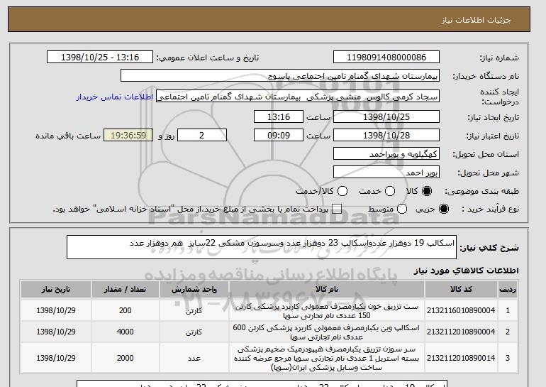 شرح کلی نیاز: اسکالپ 19 دوهزار عددواسکالپ 23 دوهزار عدد وسرسوزن مشکی 22سایز هم دوهزار عدد