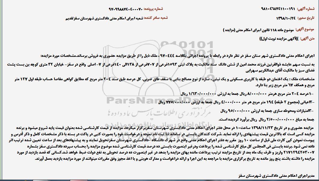 اجرای احکام مدنی دادگستری شهرستان سقز