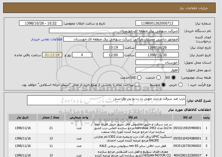 شرح کلی نیاز: درب ضد سرقت و درب چوبی در ب یو پی وی سی