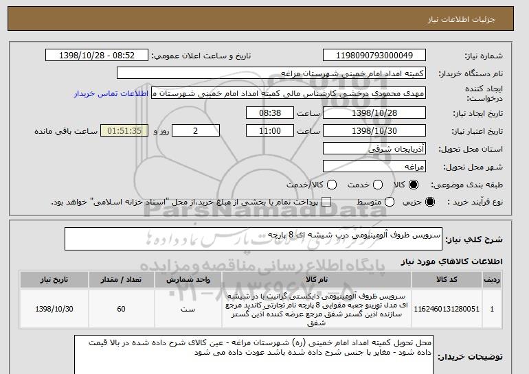 نام دستگاه خریدار:کمیته امداد امام خمینی شهرستان مراغه