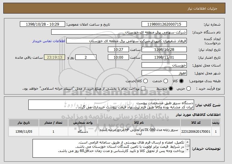 نام دستگاه خریدار:شرکت سهامی برق منطقه ای خوزستان