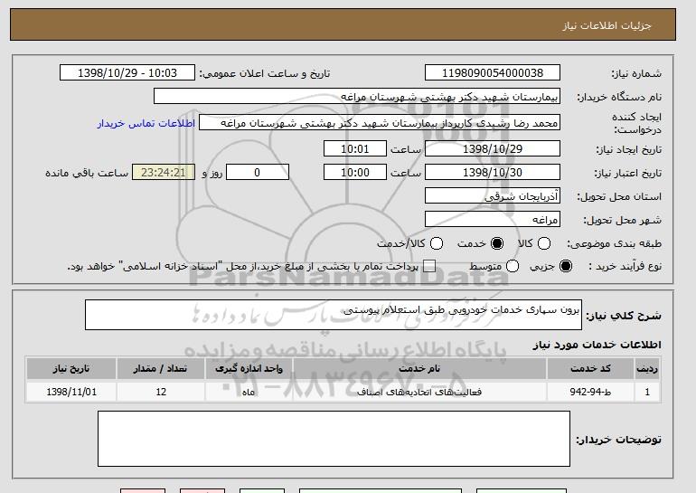 شرح کلی نیاز: برون سپاری خدمات خودرویی طبق استعلام پیوستی