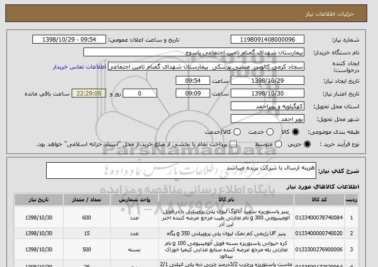 نام دستگاه خریدار:بیمارستان شهدای گمنام تامین اجتماعی یاسوج