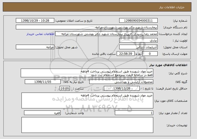 نام دستگاه خریدار:بیمارستان شهید دکتر بهشتی شهرستان مراغه
