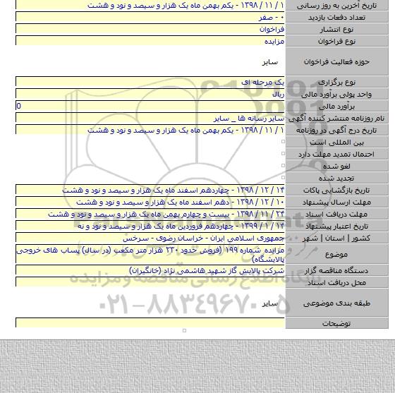 مزایده شماره ۱۹۹ (فروش حدود ۲۳۰ هزار متر مکعب (در سال) پساب های خروجی پالایشگاه)