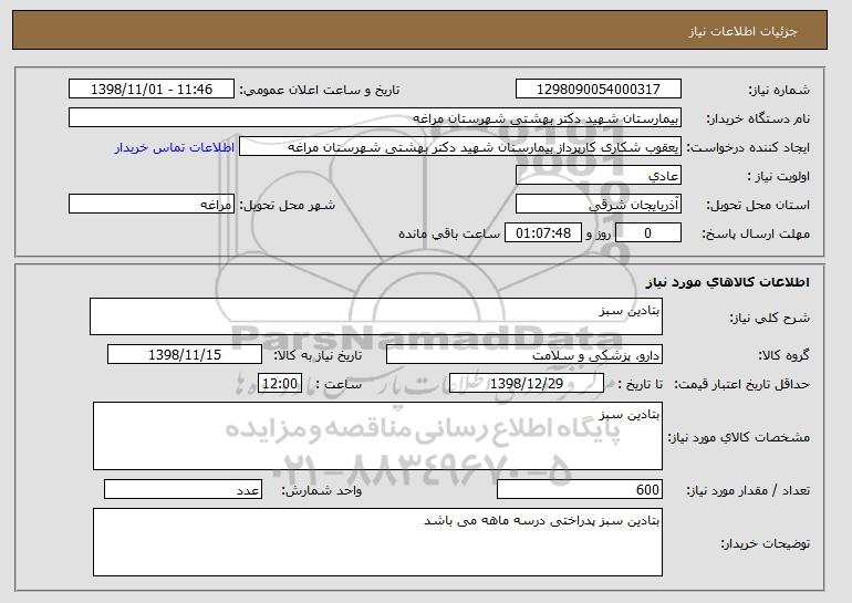 نام دستگاه خریدار:بیمارستان شهید دکتر بهشتی شهرستان مراغه