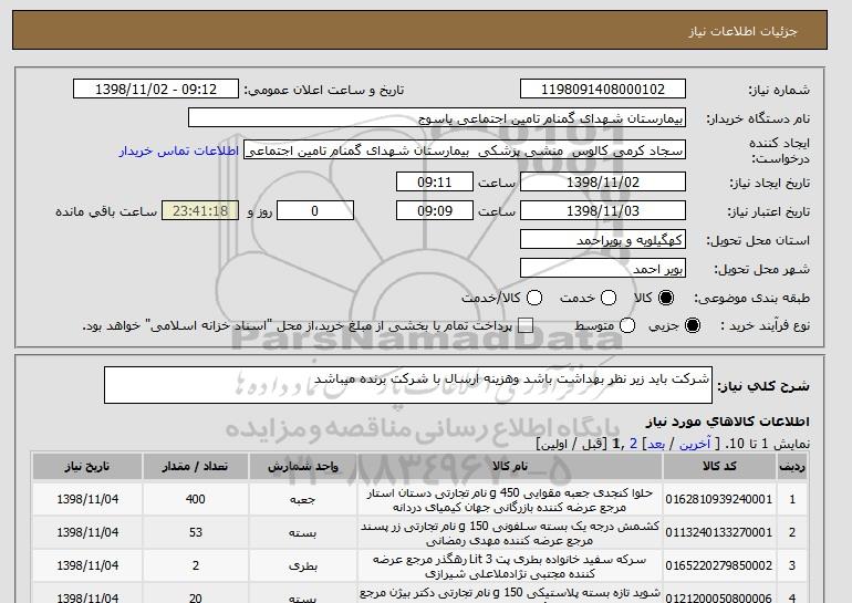 شرح کلی نیاز: شرکت باید زیر نظر بهداشت باشد وهزینه ارسال با شرکت برنده میباشد