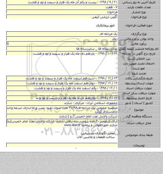 مناقصه عمومی یک مرحله ای۳۷/۹۸ تحت عنوان تهیه، نصب وراه اندازی تسمه واحد جامدسازی گوگرد