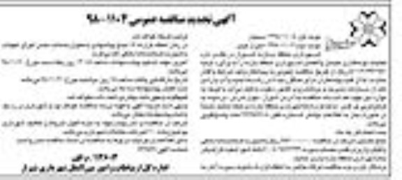 تمام آگهی ها طبق نمونه تصویر آگهی صرفا جهت اطلاع رسانی می باشد در خصوص استفاده از این آگهی هر گونه مسئولیت پرداخت به آگهی دهنده و بررسی و احراز هویت به عهده شرکت کنندگان می باشد و پایگاه خبری پارس نماد هیچگونه منفعت و مسئولیتی بابت تعهد این آگهی ندارد.