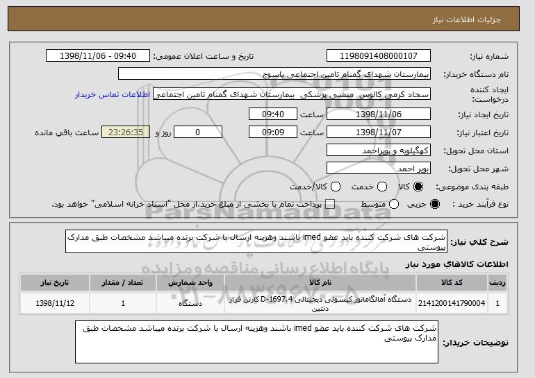 نام دستگاه خریدار:بیمارستان شهدای گمنام تامین اجتماعی یاسوج