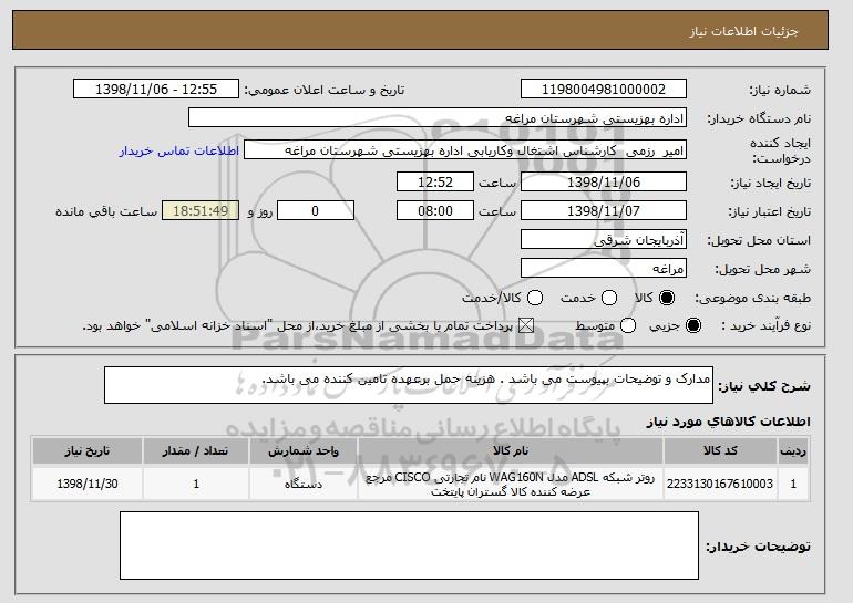 نام دستگاه خریدار:اداره بهزیستی شهرستان مراغه