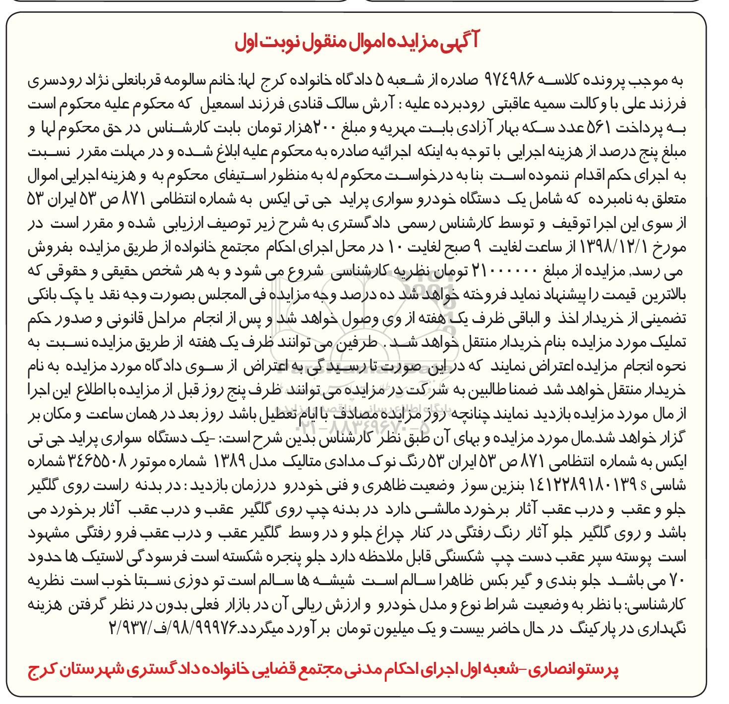 زمان مزایده مورخ 98.12.1 از ساعت 9 صبح الی 10