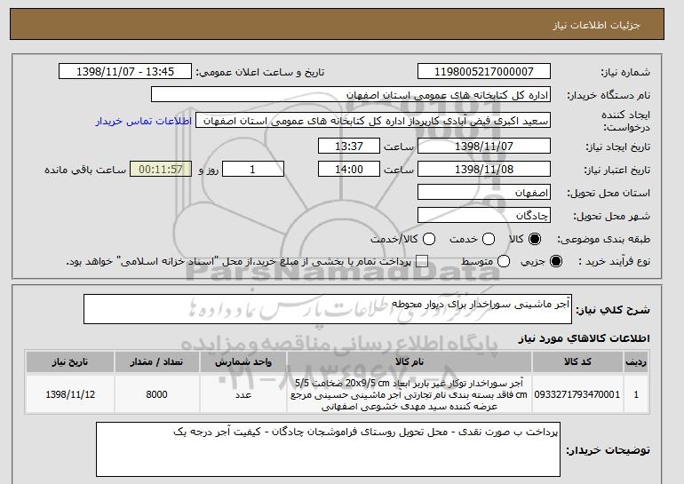 شرح کلی نیاز: آجر ماشینی سوراخدار برای دیوار محوطه