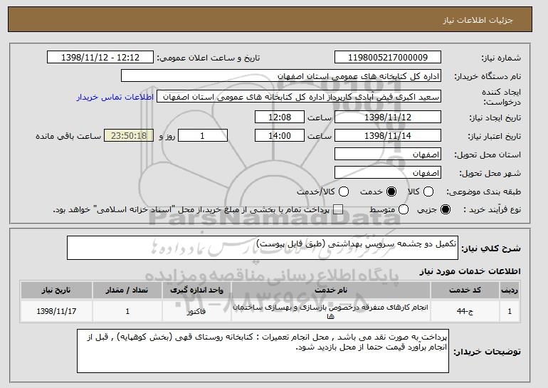شرح کلی نیاز: تکمیل دو چشمه سرویس بهداشتی (طبق فایل پیوست)