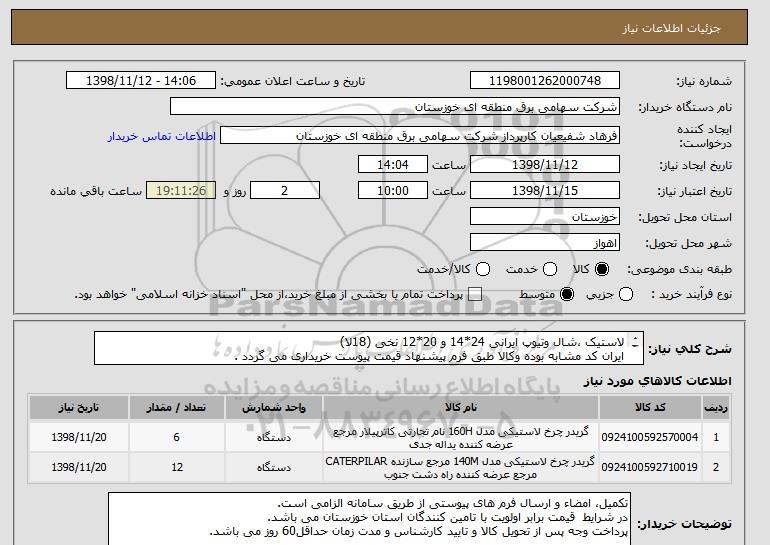 نام دستگاه خریدار:شرکت سهامی برق منطقه ای خوزستان