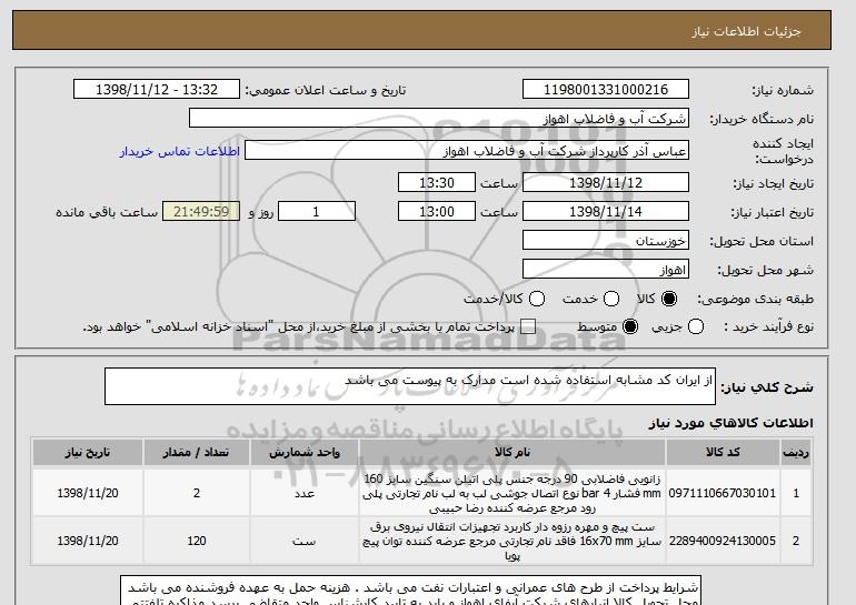 نام دستگاه خریدار:شرکت آب و فاضلاب اهواز