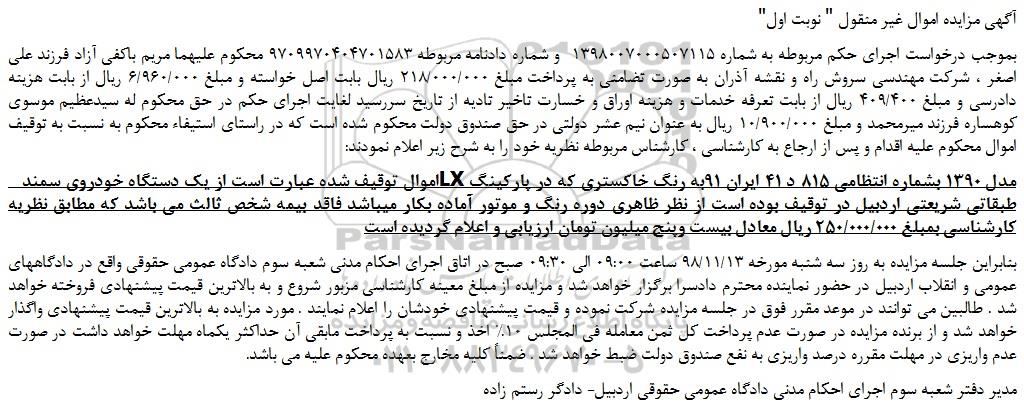 شعبه صادر کننده:شعبه سوم اجرای احکام مدنی دادگستری شهرستان اردبیل
