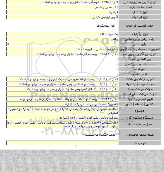 مناقصه عمومی یکمرحله ای شماره ۳۴/۹۸ انجام حجم خدمات نگهداری و تعمیرات عمومی