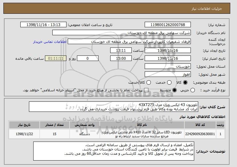 شرح کلی نیاز: تلویزیون 43 ایکس ویژن مدل 43XT275