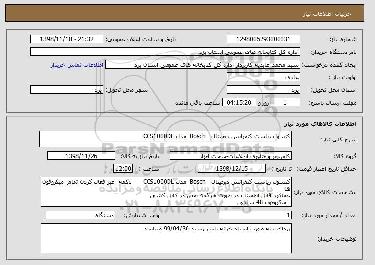نام دستگاه خریدار:اداره کل کتابخانه های عمومی استان یزد