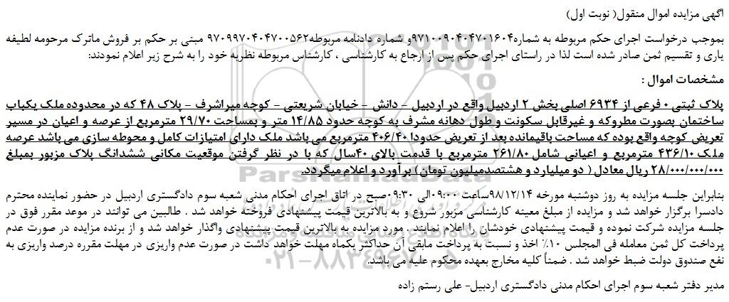 شعبه صادر کننده:شعبه سوم اجرای احکام مدنی دادگستری شهرستان اردبیل