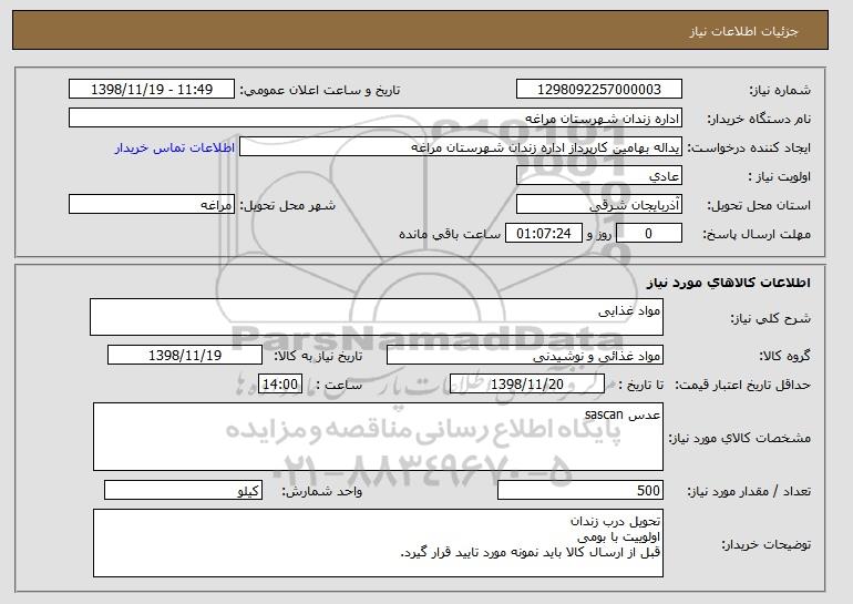 نام دستگاه خریدار:اداره زندان شهرستان مراغه