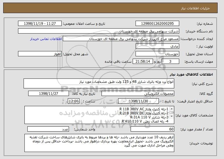 نام دستگاه خریدار:شرکت سهامی برق منطقه ای خوزستان