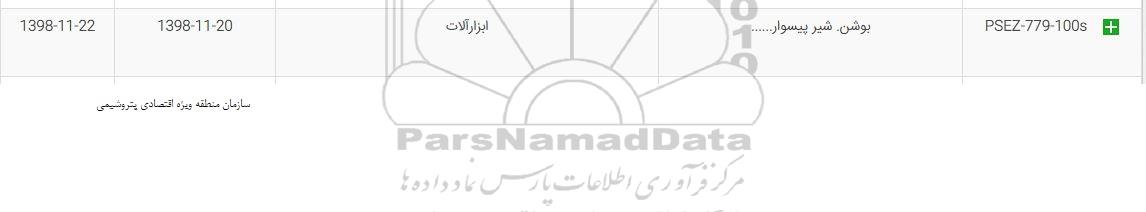 | psez-779-100s | بوشن، شیر پیسوار... | ابزارآلات | 98.11.20 | 98.11.22 |