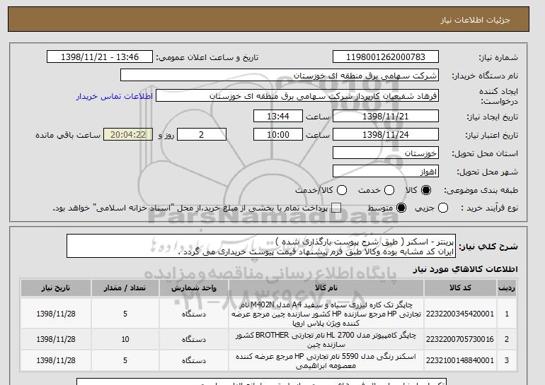 شرح کلی نیاز: پرینتر - اسکنر ( طبق شرح پیوست بارگذاری شده )