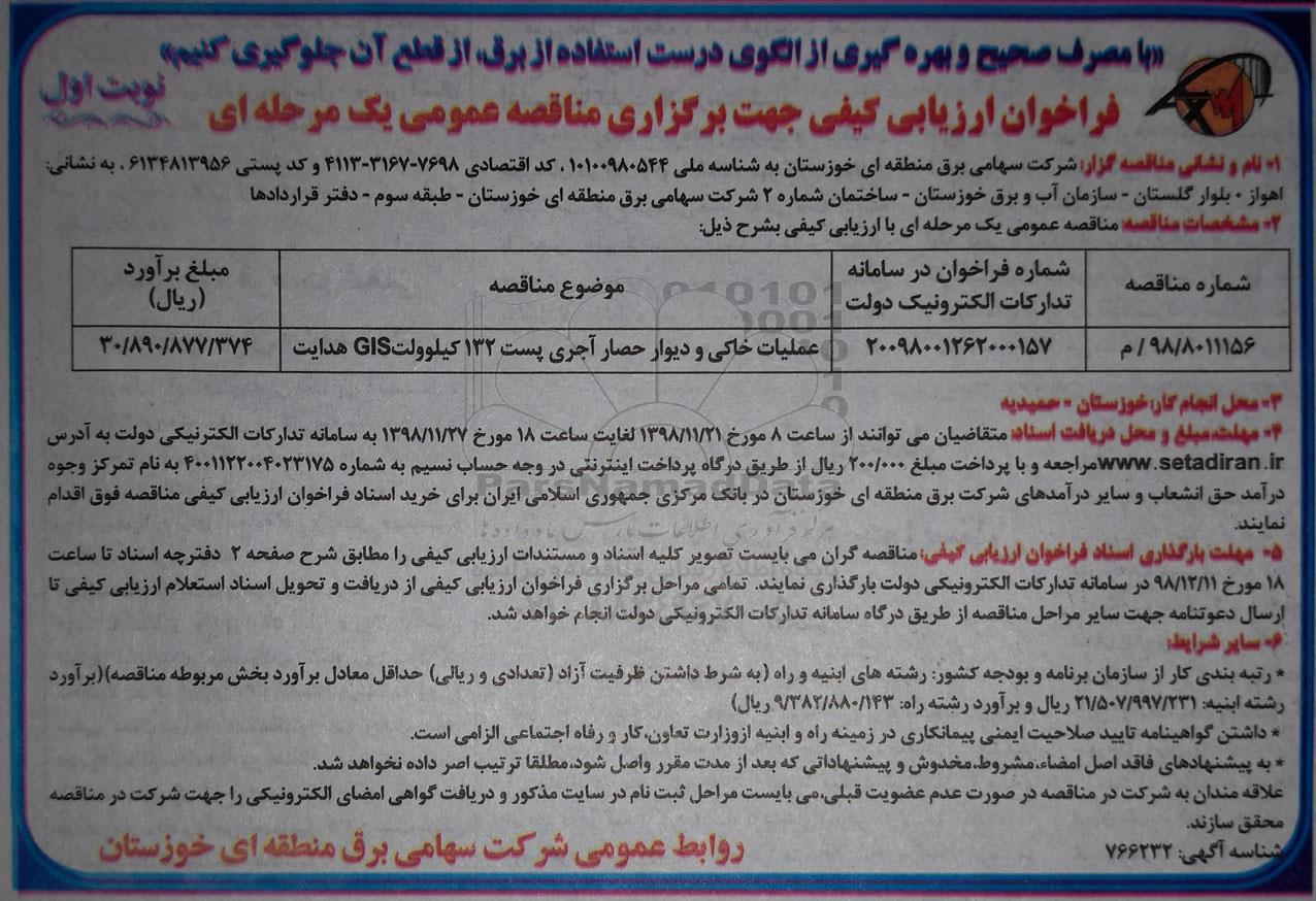مناقصه تکمیل عملیات خاکی و دیوار حصار آجری پست 132 کیلوولت ..., مناقصه , مناقصه تکمیل عملیات خاکی و دیوار حصار آجری پست 132 کیلوولت ...