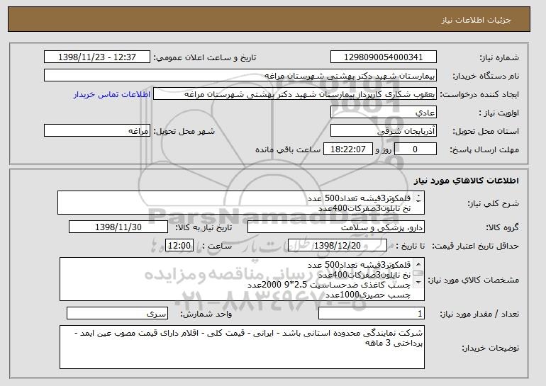 نام دستگاه خریدار:بیمارستان شهید دکتر بهشتی شهرستان مراغه