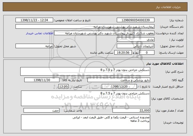 مشخصات کالای مورد نیاز: دستکش جراحی بدون پودر 7 و 7.5 و 8