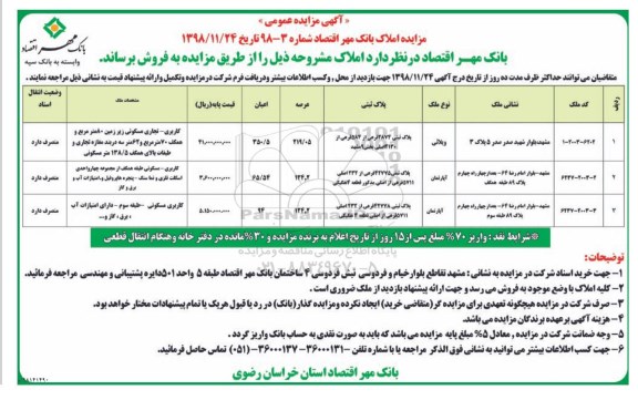 مزایده فروش املاک کاربری ویلایی و آپارتمان شماره 98-3