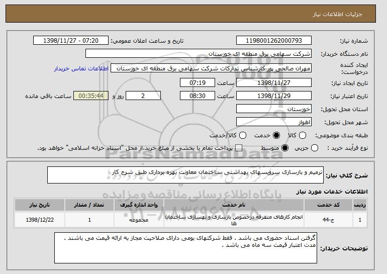 شرح کلی نیاز: ترمیم و بازسازی سرویسهای بهداشتی ساختمان معاونت بهره برداری طبق شرح کار
