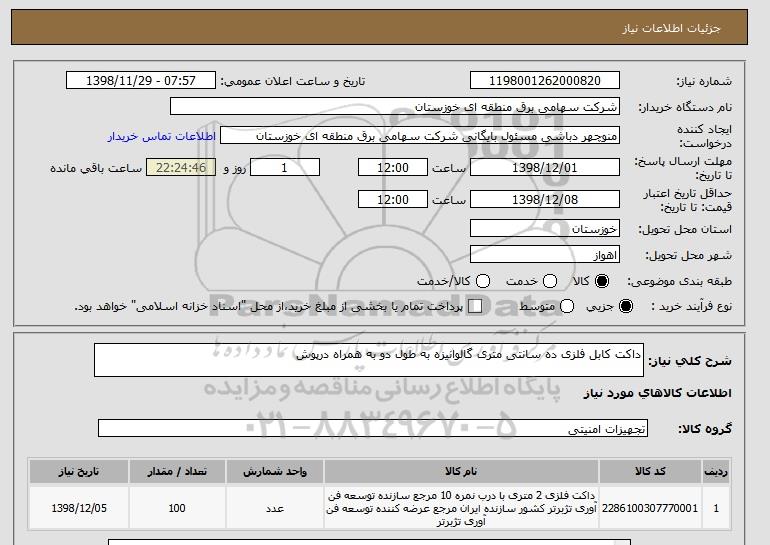 نام دستگاه خریدار:شرکت سهامی برق منطقه ای خوزستان