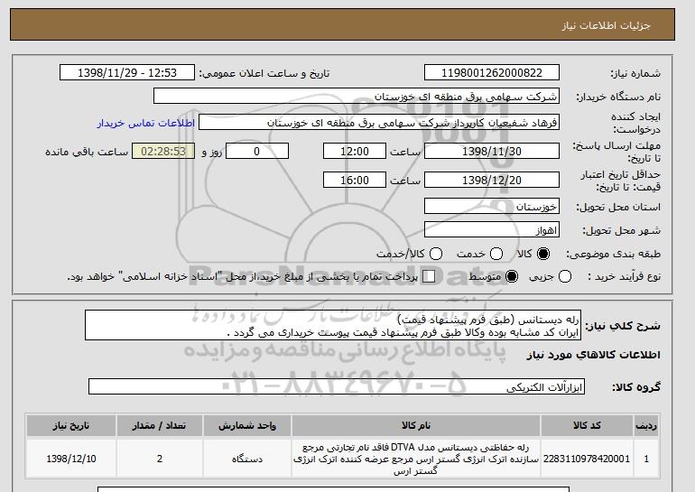 نام دستگاه خریدار:شرکت سهامی برق منطقه ای خوزستان