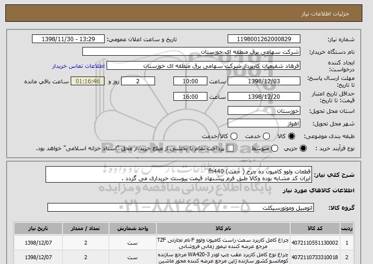 استعلام قطعات ولوو کامیون ده چرخ ( جفت) fh440 ایران کد مشابه بوده وکالا طبق فرم پیشنهاد قیمت پیوست خریداری می گردد ., استعلام قطعات ولوو کامیون ده چرخ ( جفت) fh440 ایران کد مشابه بوده وکالا طبق فرم پیشنهاد قیمت پیوست خریداری می گردد .