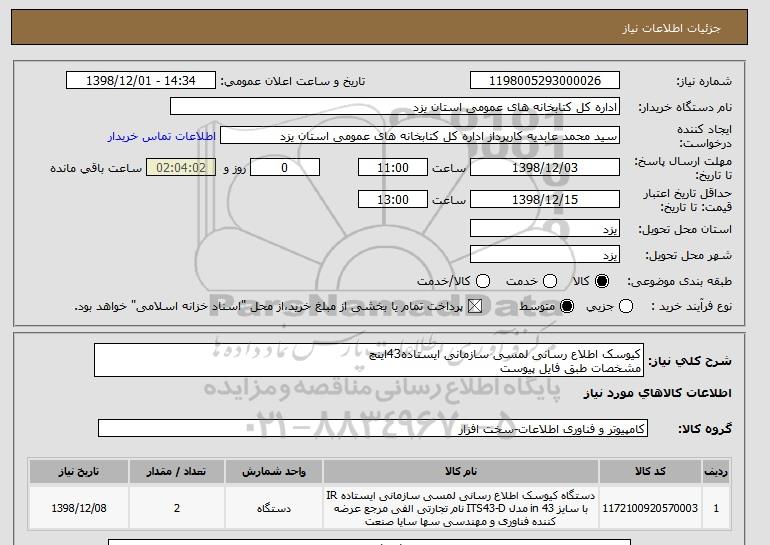 نام دستگاه خریدار:اداره کل کتابخانه های عمومی استان یزد